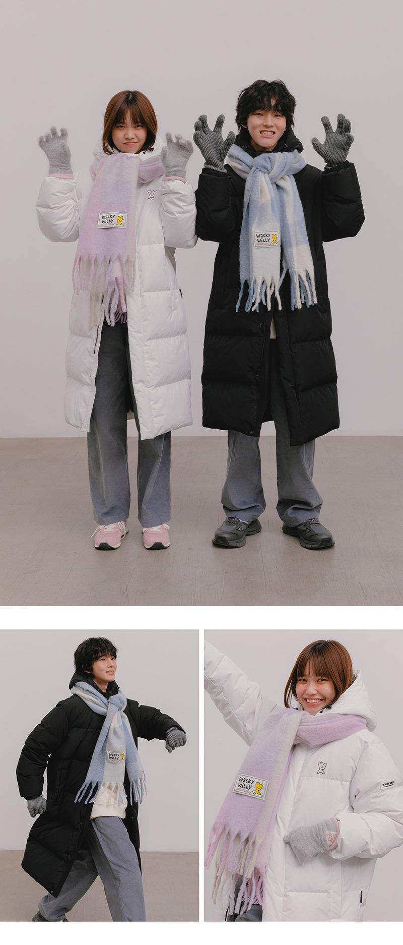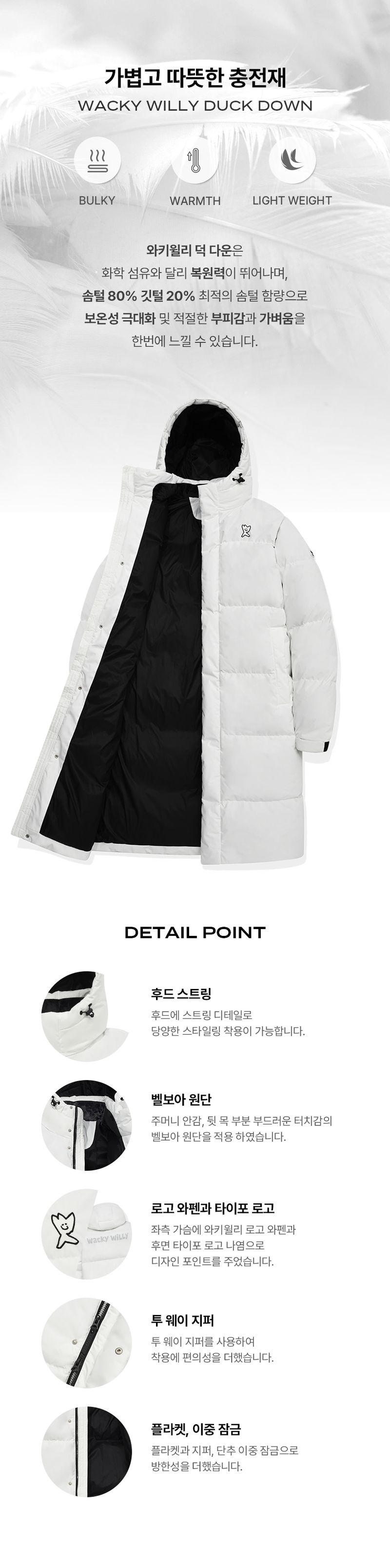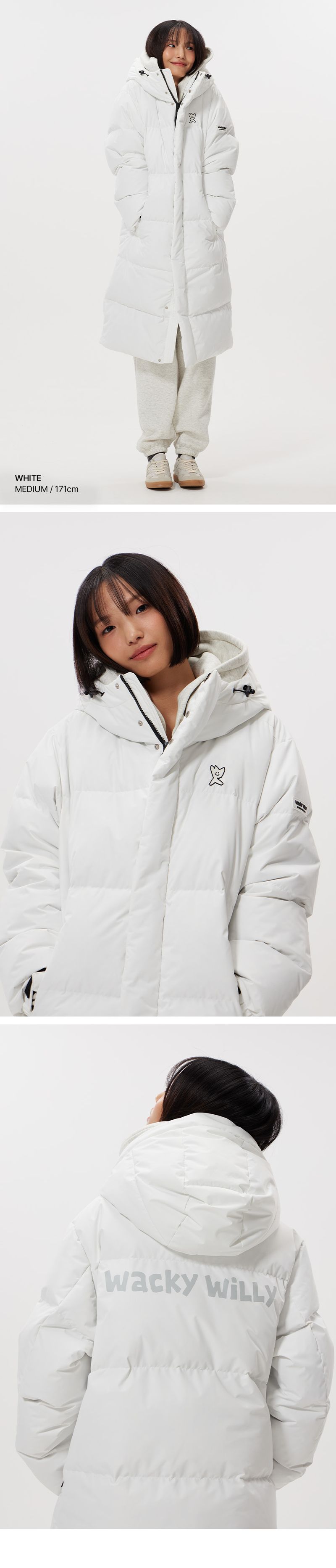 韓國直送 WACKY WILLY - Logo Wappen Hood Long Down Jumper White