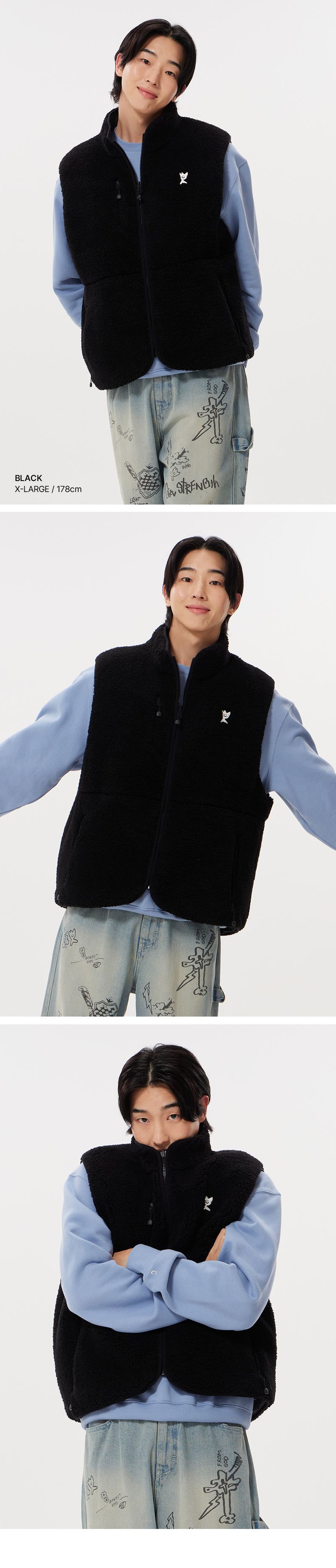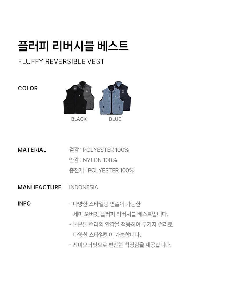 韓國直送 WACKY WILLY - Fluffy Reversible Vest Black