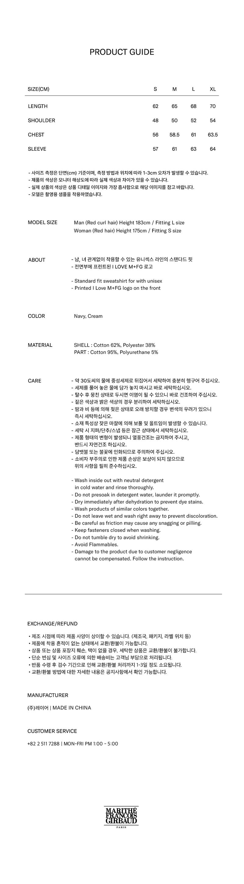 韓國直送- MARITHE FRANCOIS GIRBAUD - I LOVE MFG SWEATSHIRT cream